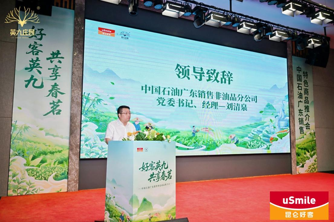 推介会上,英九庄园董事长易振华为活动致词,他深情地介绍了英德红茶英红九号的成长故事,以及英九庄园构建以数字化为特色的标准化生产体系,打造供应链平台服务中石油昆仑好客的合作历程;描绘了未来英九庄园开启产区化农商文旅,打造庄园红茶生活方式,服务中石油百万车主的美好愿景。